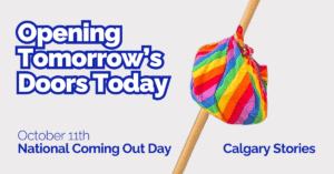 Earlier this fall, SafeLink Alberta’s Jax Dowdell and Calgary Queer Arts Society’s Shone Thistle sat down to talk about visibility, coming out, and the deeply personal reasons some folks choose not to, including concerns about safety. That conversation reminded us of something simple and tender: coming out isn’t a test you pass. It’s a series of choices you make to protect your well-being and honour your complex journey.